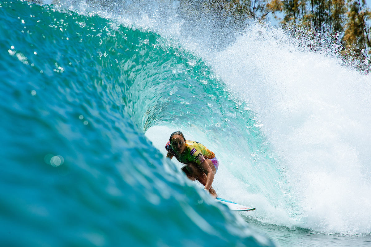 妊娠2ヶ月ながらタヒチのヘビーな波でQF進出を果たし、世界を驚かせた。