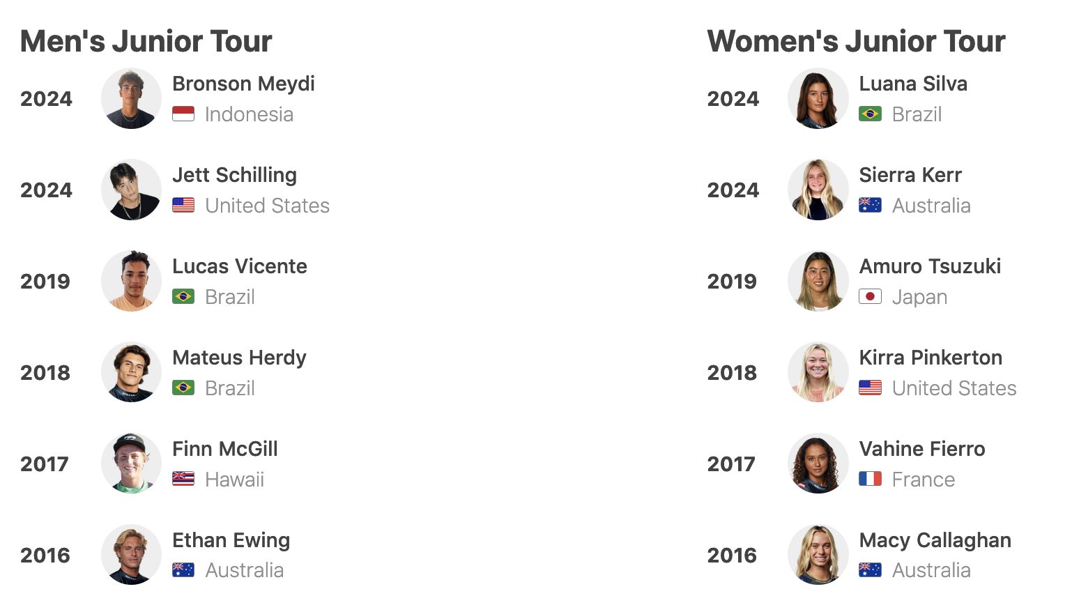 その他、WJCチャンピオンのシエラ・カー(AUS)、昨年2位に入ったウィンター・ヴィンセント(AUS)、姉妹でISAイベントでも活躍を続けているバスク出身のハニレ・ゴンサレス・エチャバリとアネット・ゴンサレス・エチャバリ。