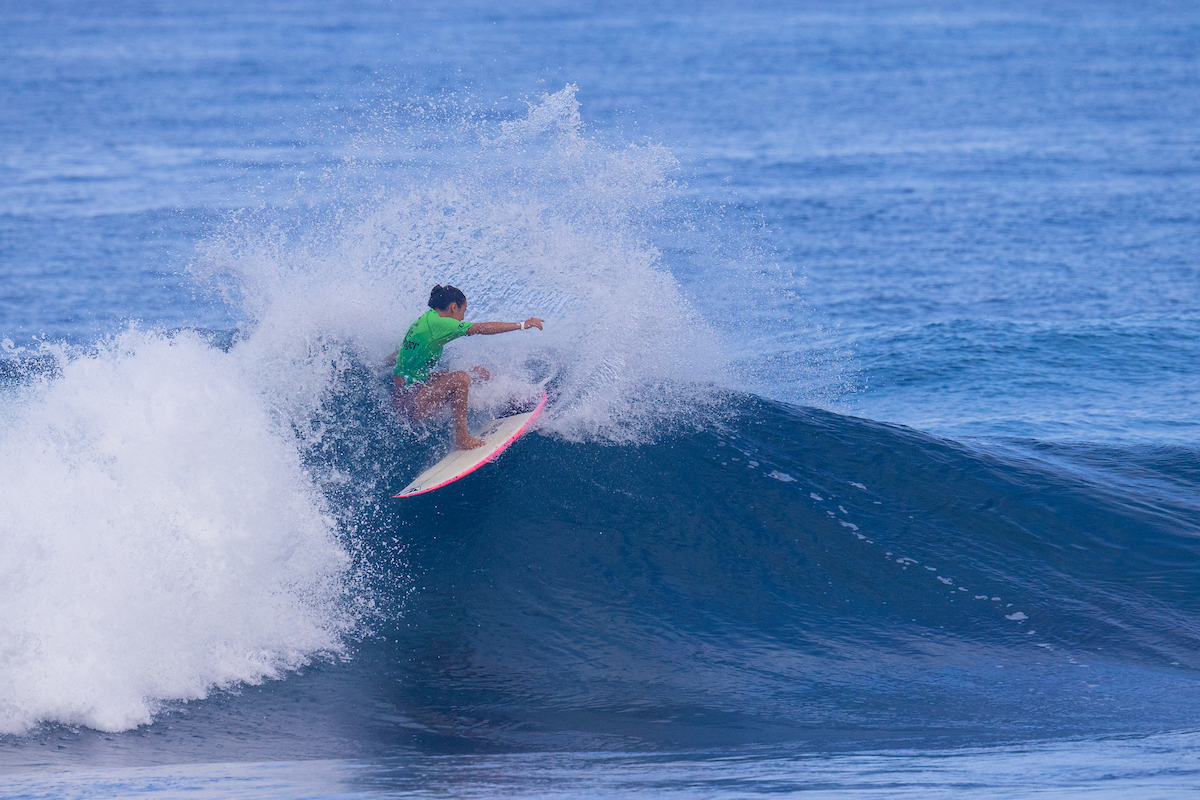 HEAT 3: Arena Rodriguez (PER) 8.74 DEF. Moana Jones Wong (HAW) 6.87, Sol Aguirre (PER) 6.36, Keala Tomoda-Bannert (HAW) 4.50