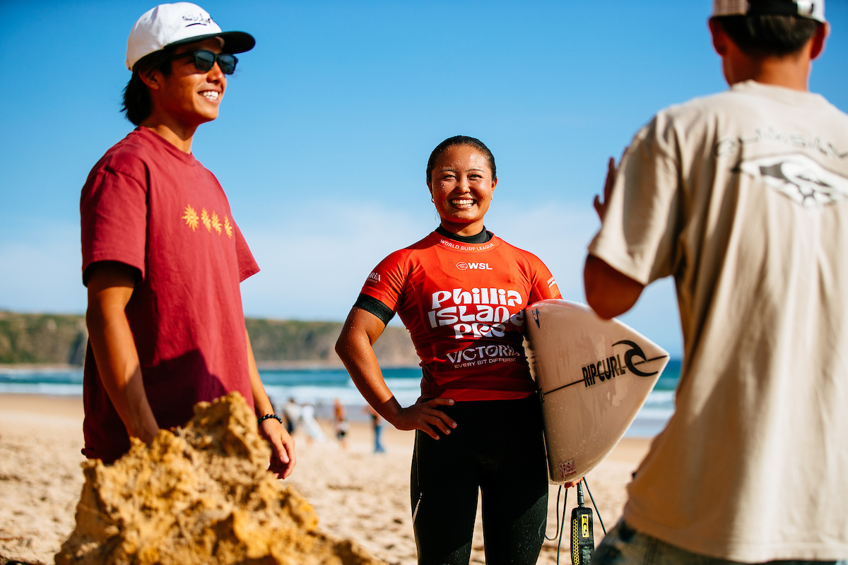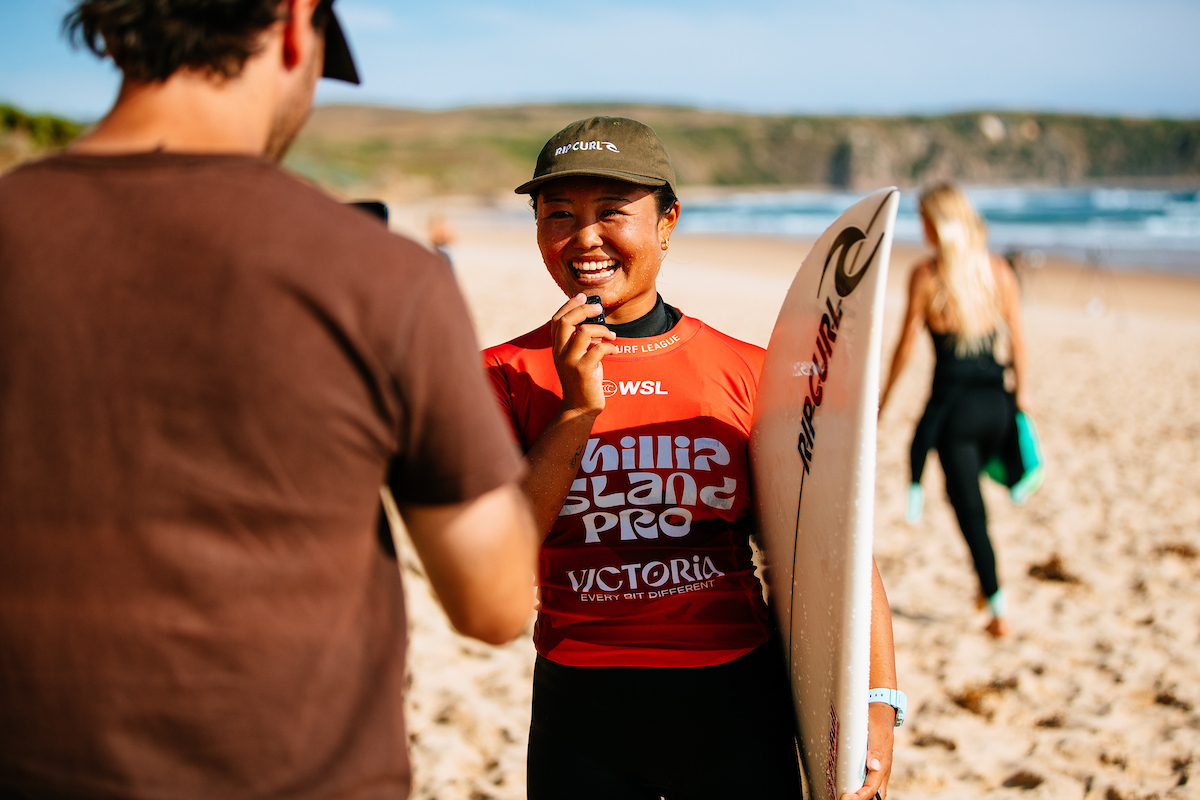 トータルでも14.00とこの日2番目のスコアを揃えた松岡亜音は、「とても楽しい波でした。フィリップアイランドは今回が初めてです。波は毎日あるし、みんな凄いです。とても興奮しています。波は素晴らしく、食べ物も美味しいです。男子選手たちと旅をしているので沢山のエネルギーをもらっています。QS最後のイベントなので、あとは集中するだけです。目標はCTサーファーになること。ただ楽しんでやりたいです」と勝利者インタビューに応えていた。