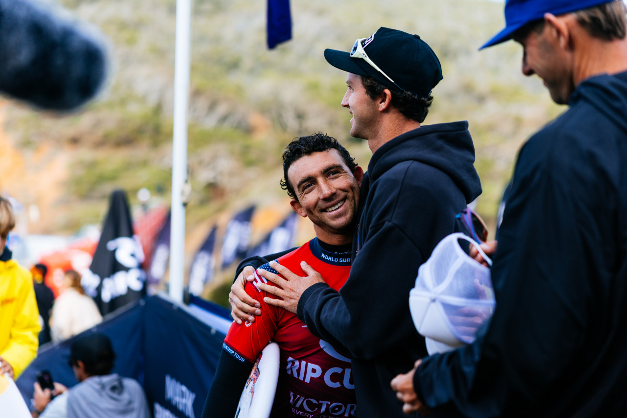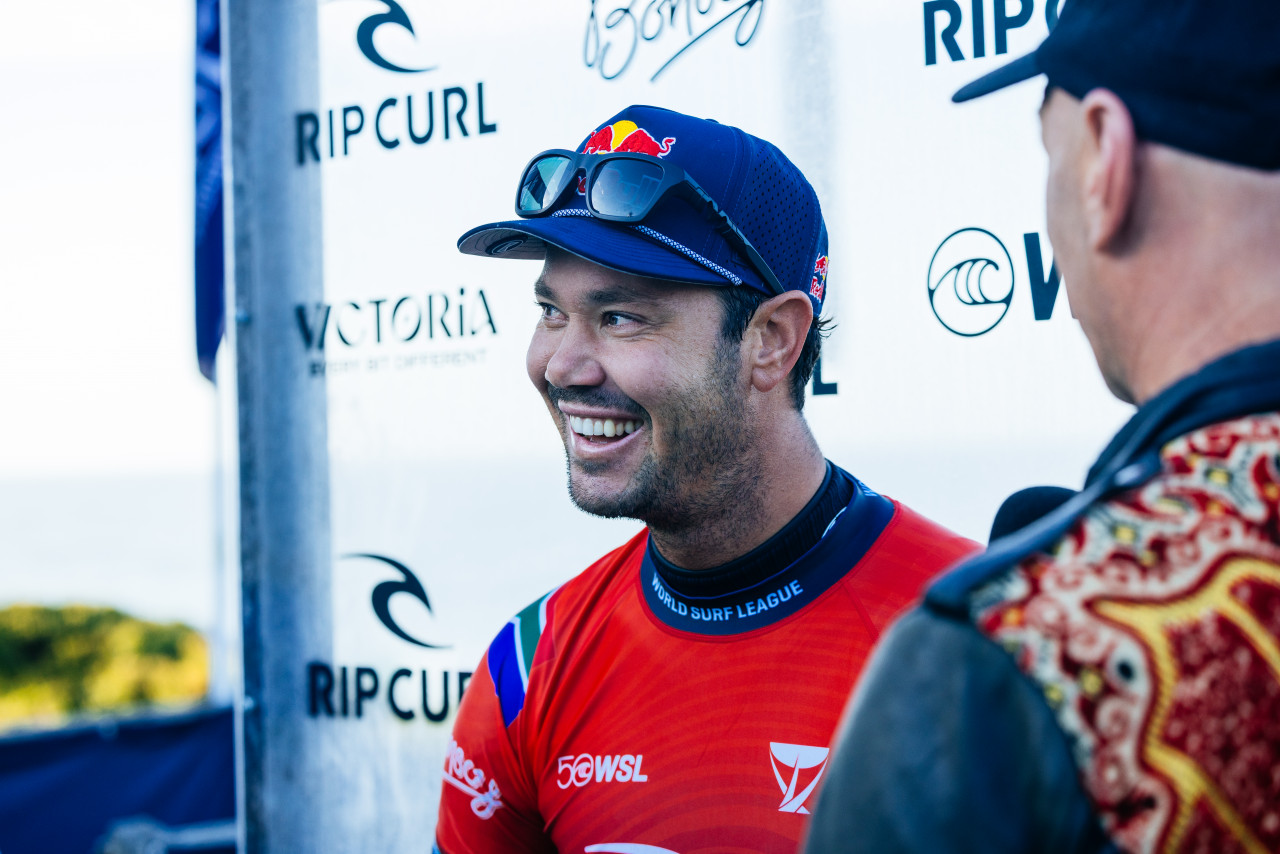 「ヒートを勝ち上がることができて、本当に嬉しいよ。対戦カードで相手がコールだと知った時、かなり厳しい戦いになると覚悟した。彼はツアーの中でも大好きなグーフィーフッターの一人。素晴らしいサーファーだし、試合運びも本当に上手い。今回は自分の方が少し運が良くて、ヒートの中で一番良い波に乗れたと思う。今朝、『Hells Bells』を聴きながら階段のところで泣いてしまって、『おいおい、ヒートに向けて準備しなきゃダメだろ』って自分に言い聞かせたんだ。ベルズでサーフィンする最後のヒートになるかもしれなかったけれど、勝つことができて、もう一度チャンスを得られたことが何より嬉しいね」