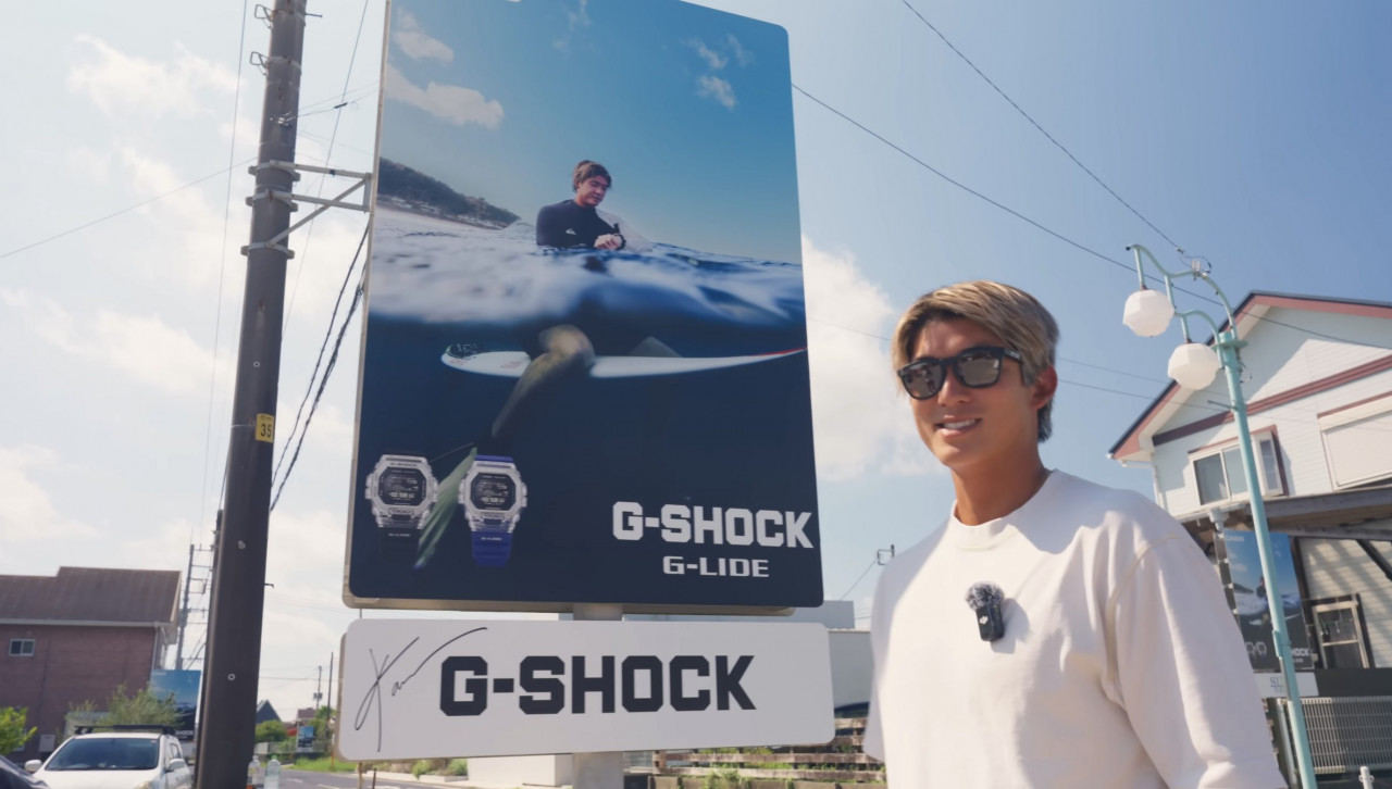 映像の冒頭では、千葉・一宮の海岸線をジャックした自身の『CASIO G-SHOCK』の看板広告を目の当たりにし、興奮を隠せない様子や、サーフィン後に多くのファンと交流するリラックスした姿が映し出される。
