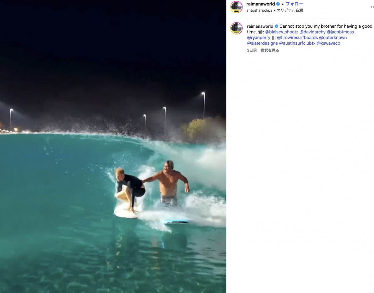 サーフランチの名物コーチ、タヒチ出身のライマナ・ヴァン・バストレーのInstagramでハリー王子の最新のライディング映像が公開され、そこで見せた「バレルライドの姿勢」とライマナの体を張ったコーチの方法が注目を集めている。