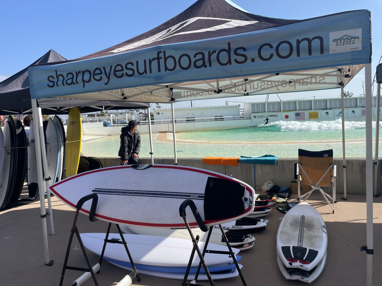 こうした「波」と「試乗」という要素が相まってか、本展示会場には国内外で実績を持つ著名ボードメーカーが集結した。 初開催につき出展が無料の流れもあったが、これはかつてのボードカルチャー展示会「インタースタイル」でもなかなか見ることができなかった光景であり、実際に“波のある環境”でブランドが横並びになるという構図は印象的だった。