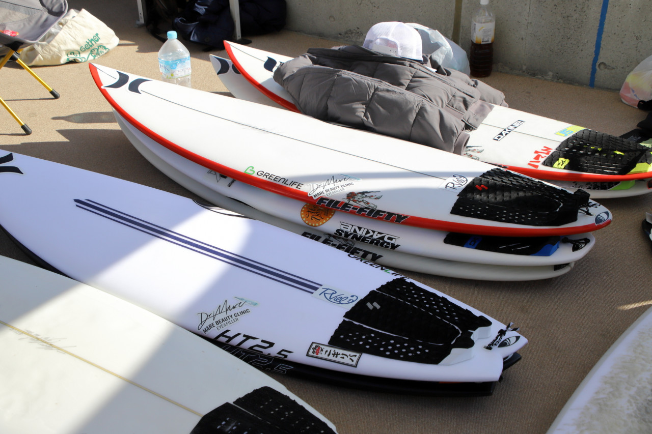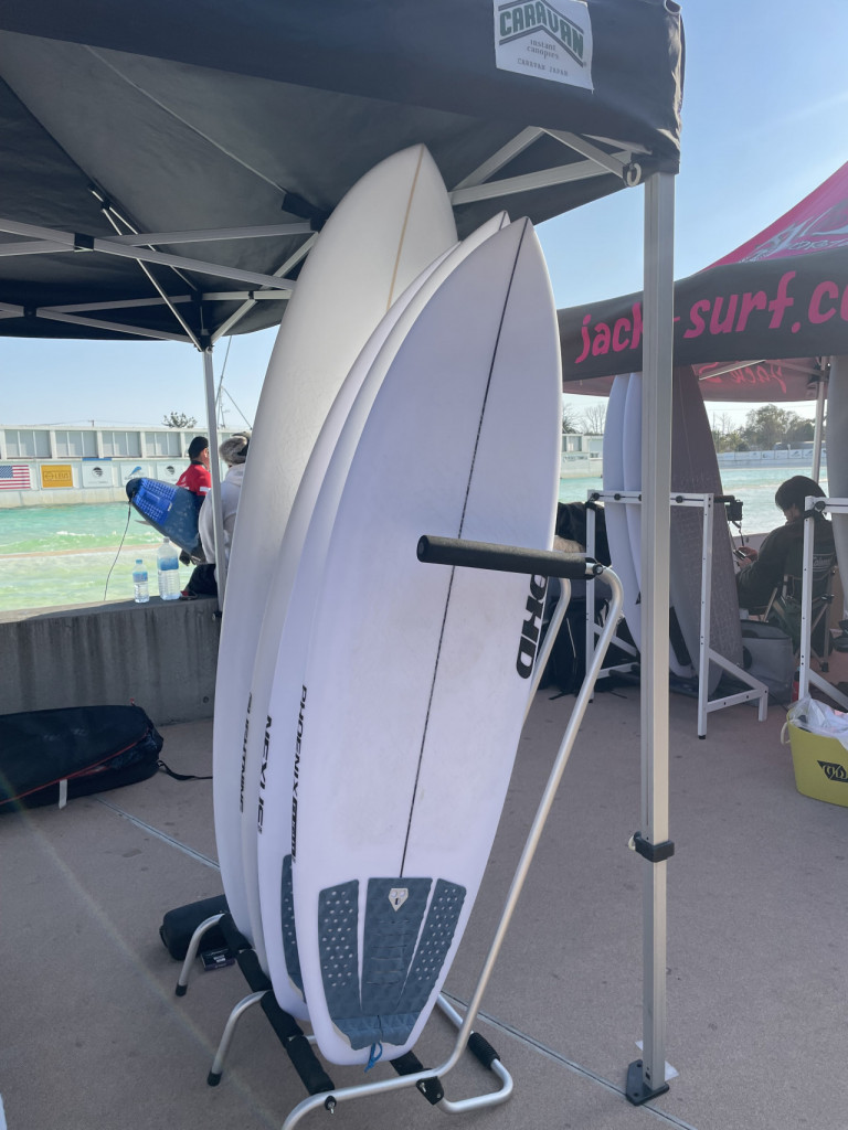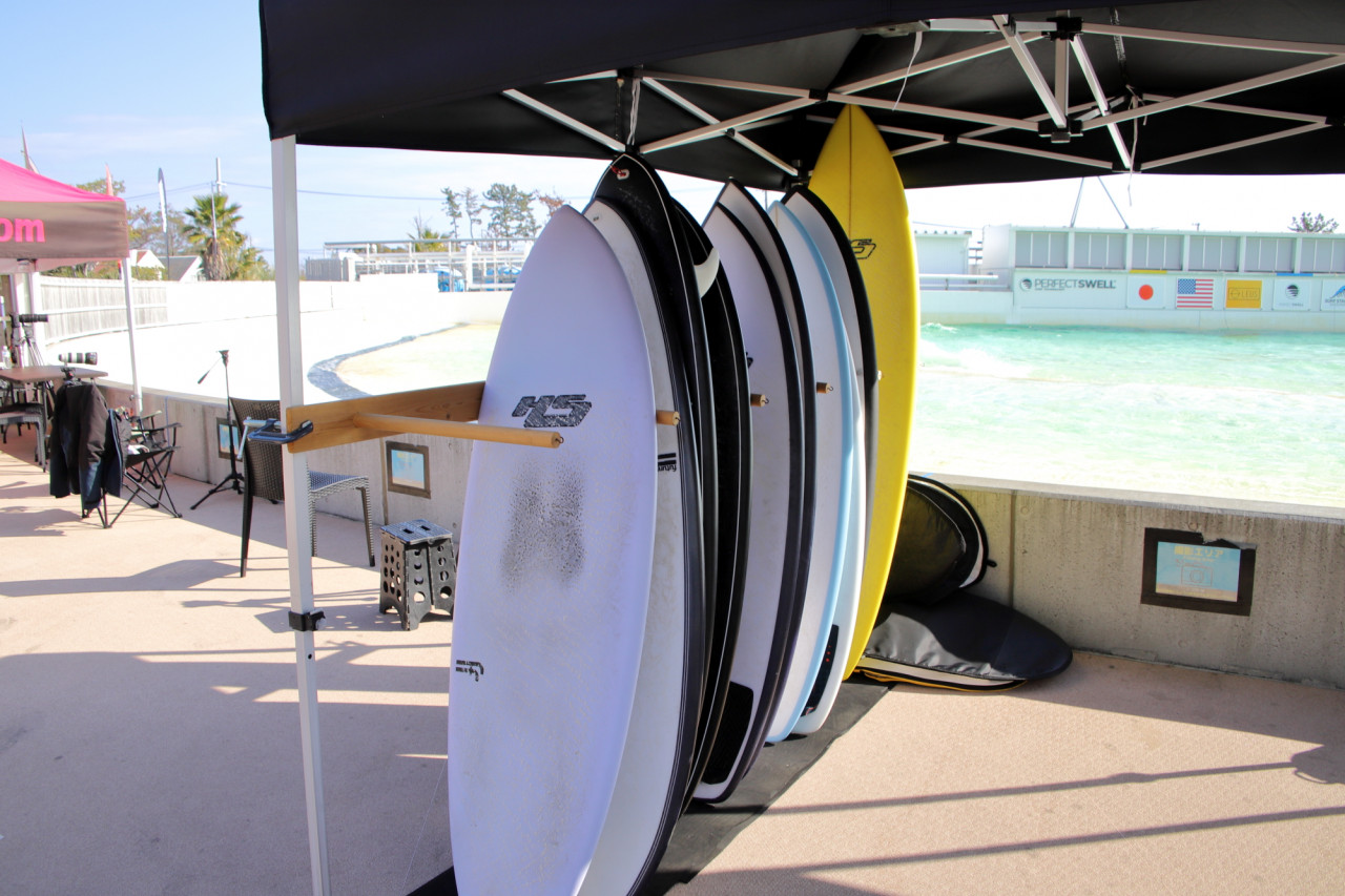「File Fifty」や、「HT2」とのその進化版の「HT2.5」など、人気モデルが多数ラインナップする中、ウェーブプールでの試乗を想定してEPSボードを中心に用意。