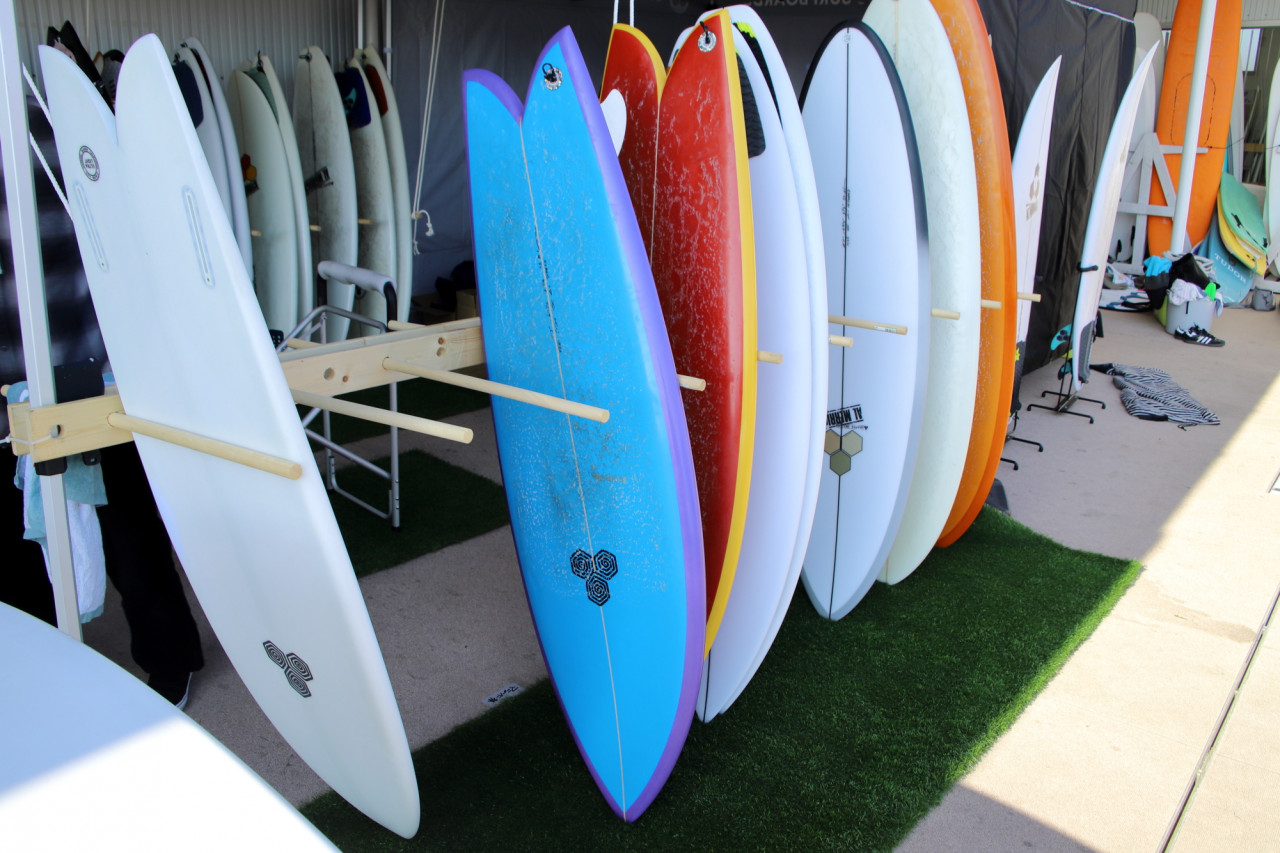多くの著名モデルがラインナップしたチャネルアイランズサーフボード。中には撮影不可のニューモデルも Photo: The Surf News