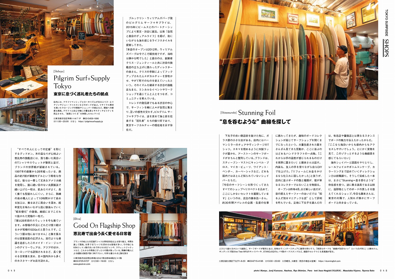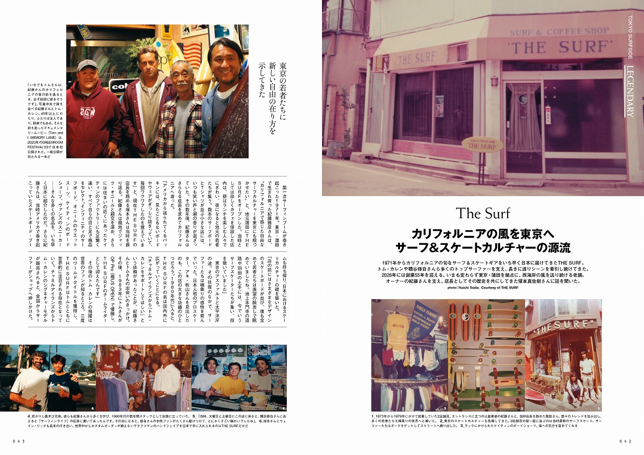 当たり前なんだけど、東京における“サーフィンは大好き。でもそれだけじゃない”という感覚はけっこう深い。なおかつそれは他のカルチャーにも通底していて、多様な文化が垣根を越えて無限に交流を重ね、カオスを生み、言葉では言い表せないおもしろさの原動力となってきた。