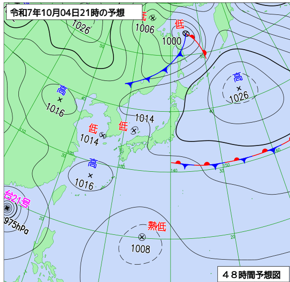 また、低気圧(熱帯低気圧)が日本の南海上を移動する模様。
