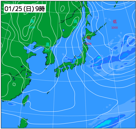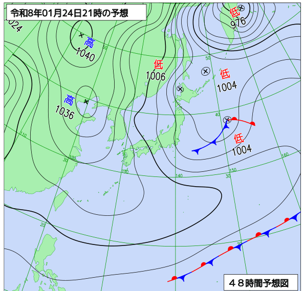 週末は24日の土曜に冬型の気圧配置が一旦弱まるが、25日の日曜は再び強まる予想。