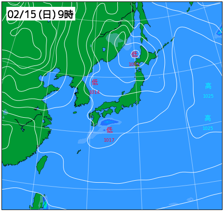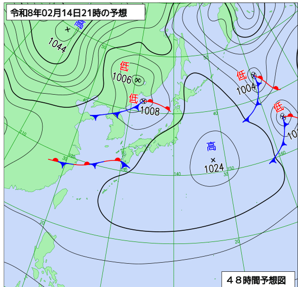 予想天気図(2月14日21時の予想)