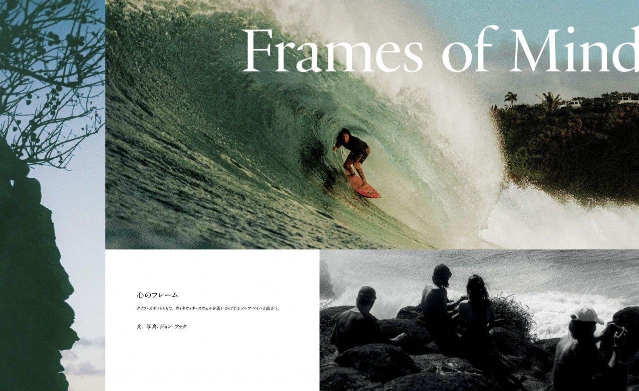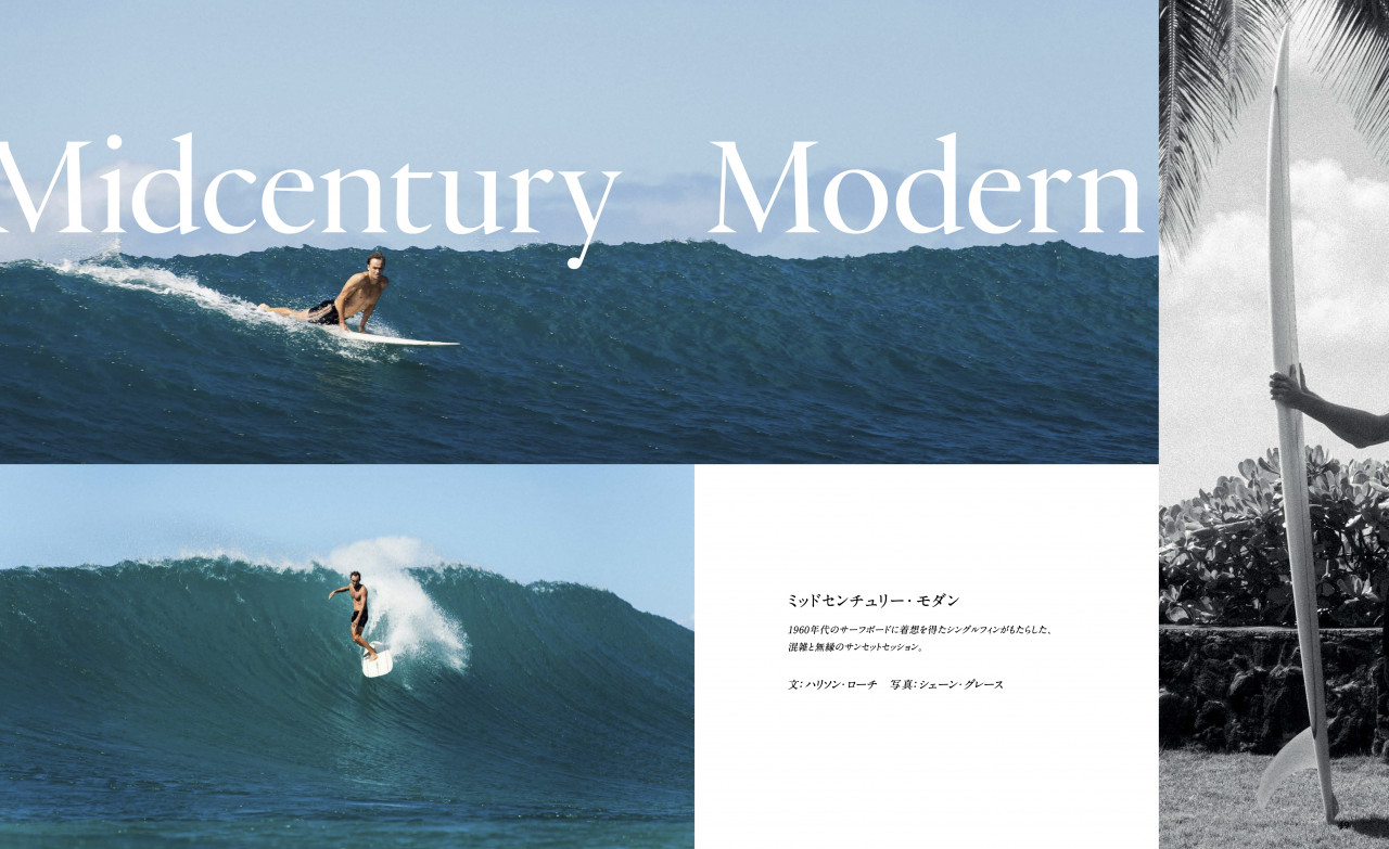上記のほか、日本にあって独自のオーシャニスト・ウェイを突き進む、テッド・サーフ阿出川潤にインタビューを試みた「TAKEN BY THE WIND 風に身をゆだねて」や、波と仕事の狭間に揺れるサラリーマンの悲哀を描いたエッセイ「ALL THE TIME I HAD 残された時間のすべて」など、本誌ならではのディープなサーフストーリーと美しい写真が満載です。