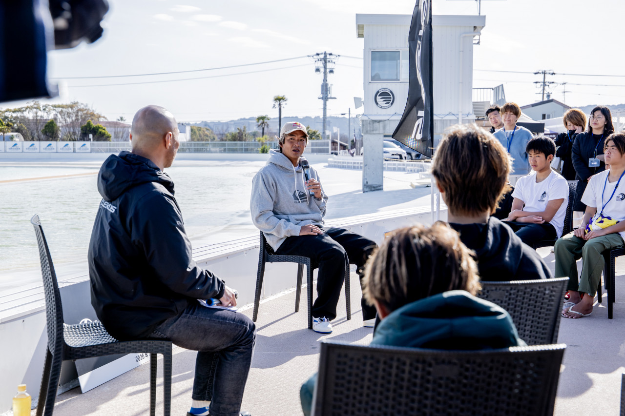 さらに、カノアはウェーブプールの特徴についても言及。「ウェーブプールの波は練習用で、海の波とは違う」とした上で、「手の位置とかボトムターンとかを細かく意識することが大切」と語った。