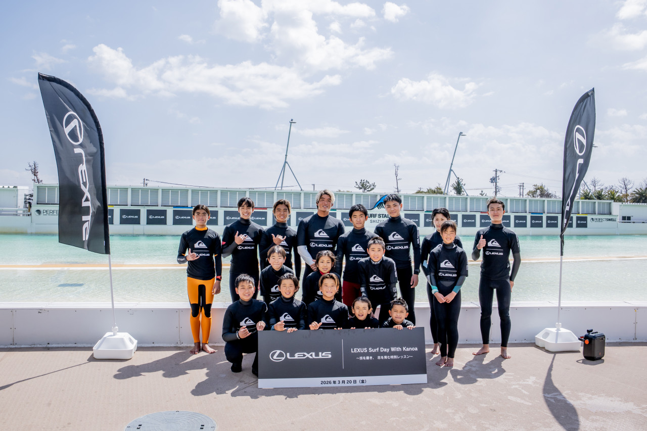 LEXUS主催による“LEXUS SURF DAY with Kanoa”が、3月20日、静波サーフスタジアムで開催された。世界の舞台で活躍する五十嵐カノアが、ジュニアサーファーに向けて直接指導を行う特別イベントだ。「夢以上の夢」をテーマにしたトークセッションやパフォーマンス披露に加え、イベント後には、自然環境について考える取り組みの一環として、カノアとともにビーチクリーンも行われた。