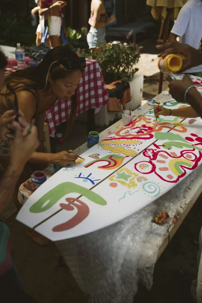 過去には、朝のヨガやアートワークショップ、さらに多くの選手が特別なニーズを持つ子どもたちと一緒にサーフィンを楽しむ機会や、チーム戦で行われる“Amigo(友達)カップ”など、1週間を通してコミュニティと深くつながる体験が用意されてきた。